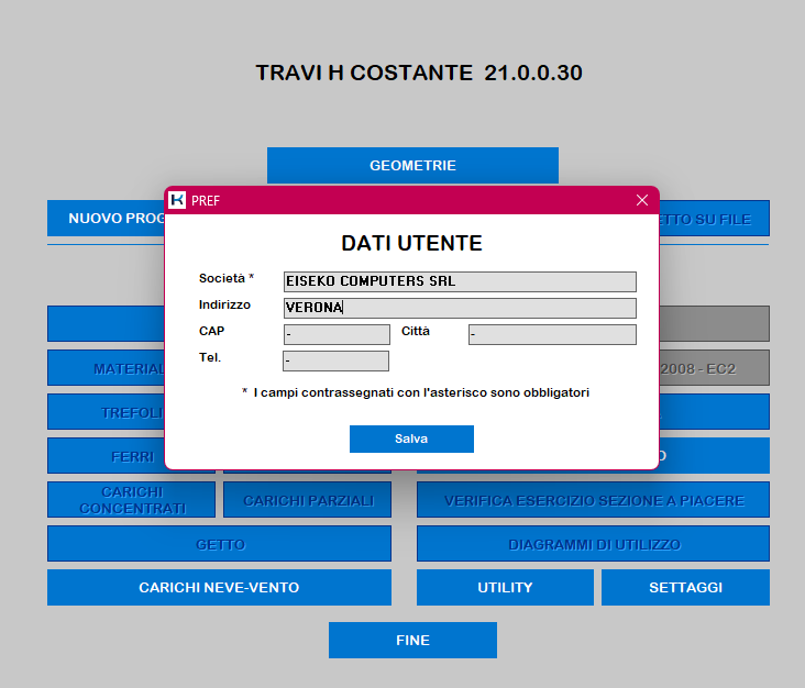 Inserire i dati desiderati e premere “Salva”.