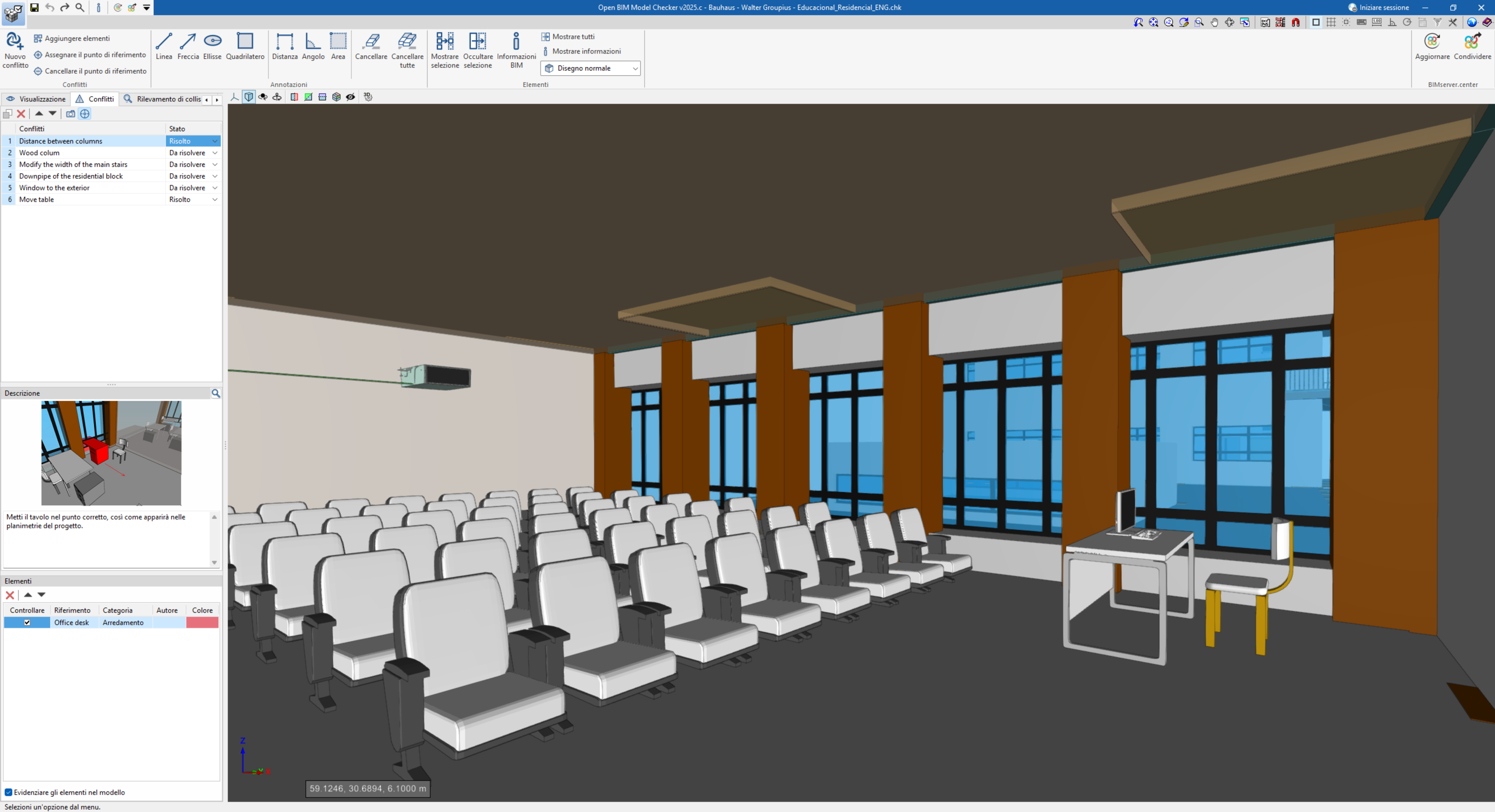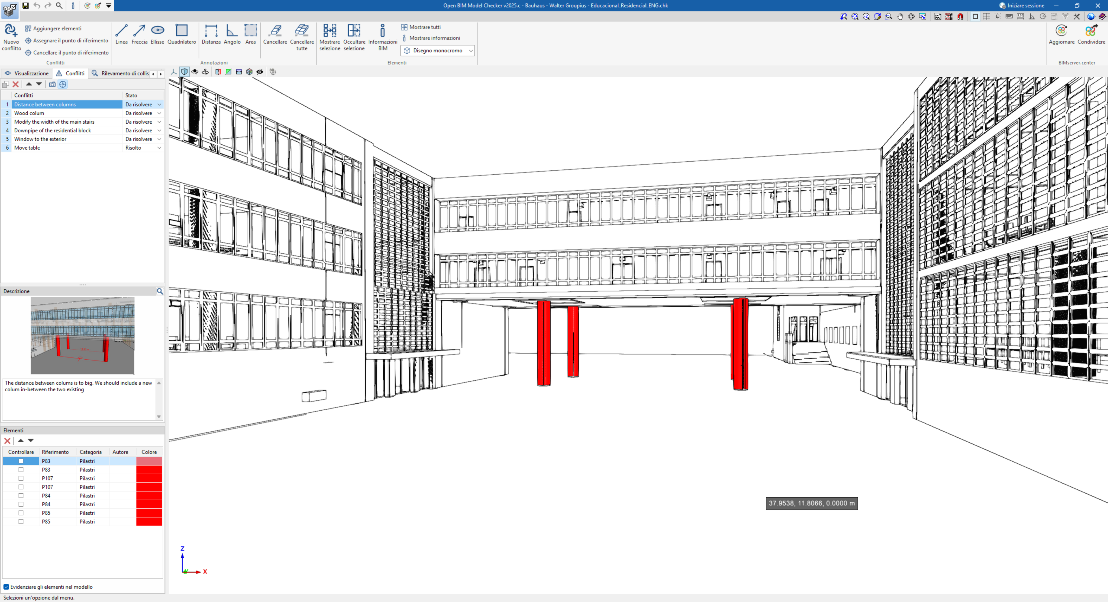 L’obiettivo principale dell’analisi è individuare le interferenze geometriche tra elementi costruttivi, come ad esempio: