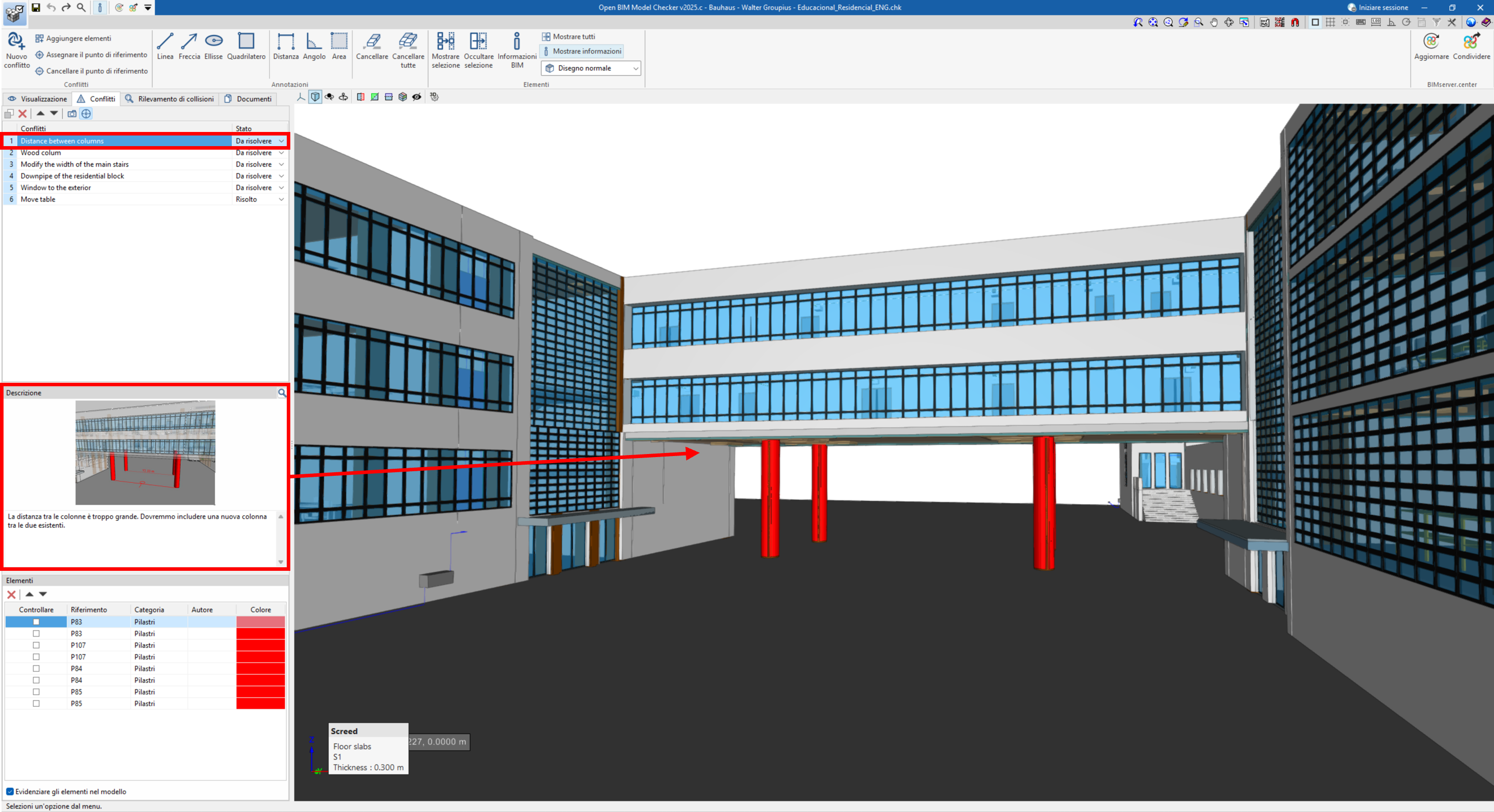 L’obiettivo principale dell’analisi è individuare le interferenze geometriche tra elementi costruttivi, come ad esempio: