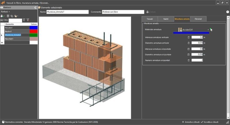 Modulo per la progettazione e verifica dei rinforzi su strutture esistenti, costituito da Modulo Vulnerabilità Sismica e Verifica dei Cinematismi Fuori Piano.
