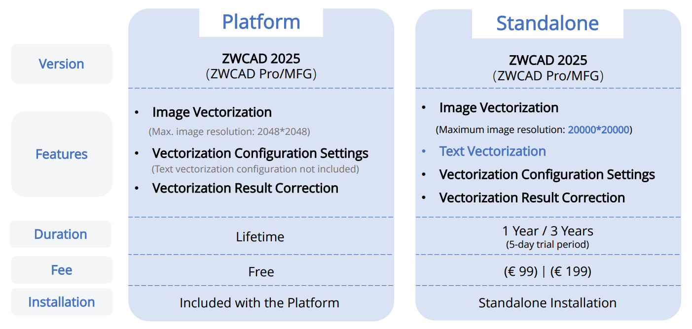 Differenze tra ZWCAD PRO e il plugin ZWVECTORIZATION